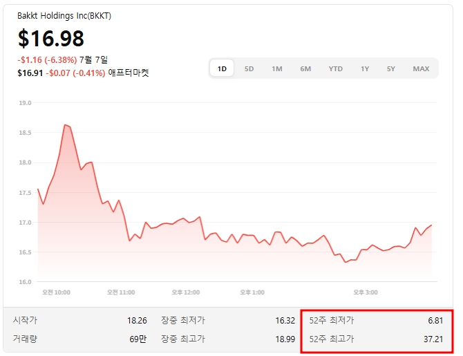 현재 주가는 $16.98로, 52주 고점인 $37 대비 낮지만, 저점 대비 두 배 이상 상승한 수준입니다.